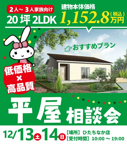 家づくりで大事なコストの部分を中心に平屋住宅についての個別相談会を開催!